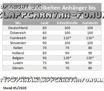 Anhänger Geschwindigkeiten