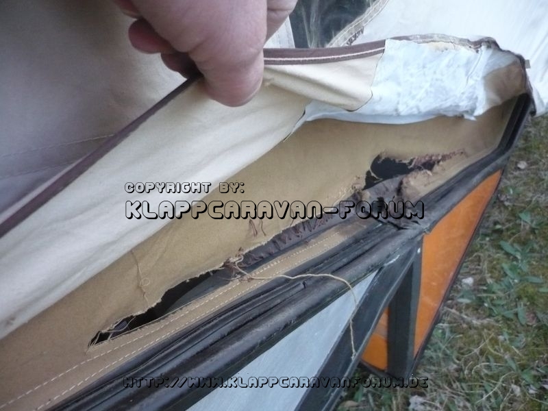 Leider genau dort, wo das Zelt am Wagen befestigt ist.