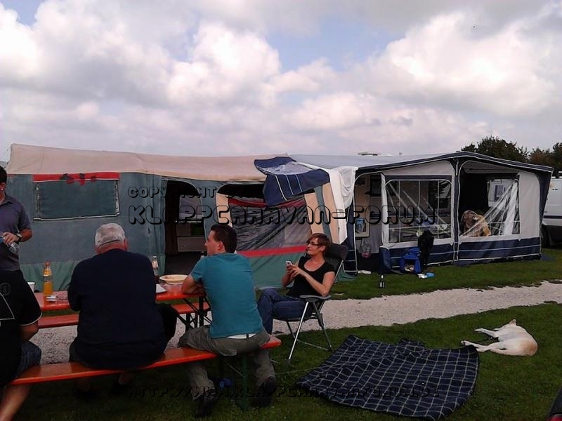 Es diente dazu die Biertische bei Regen in das geschaffenen Faltwohnwagenvorzelt zu stellen.